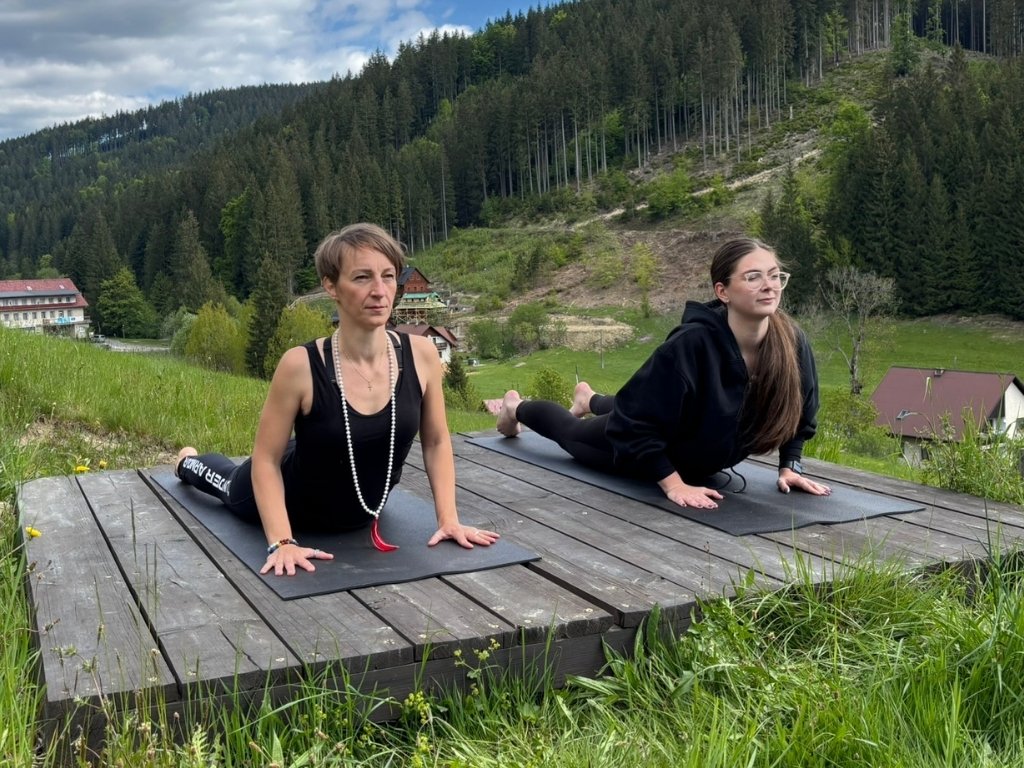 V malebném prostředí Beskyd, kde se setkává klid přírody s péčí o tělo i duši, se každou sobotu a neděli rozprostírá jedinečná atmosféra ranní jógy. V hotelech Horal a Lanterna se pravidelně konají lekce, které přitahují hosty toužící po zklidnění, protažení a příjemném startu do nového dne – pro ubytované hosty jsou navíc zdarma. Jednou z lektorek, které se na těchto lekcích podílejí, je i Eva – charismatická a zkušená průvodkyně jógovou praxí. O prázdninách navíc v úterý a v sobotu probíhají lekce na Horalu, ve čtvrtek a v neděli od 7:30 pak na Lanterně. Na závěr července se navíc hosté mohou těšit na speciální víkendový jógový pobyt s Evou v hotelu Lanterna. Nenechte si ho ujít!