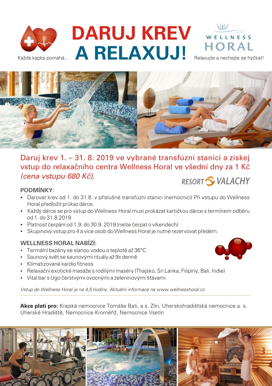 Daruj krev a relaxuj, 1.-31. 8. 2019