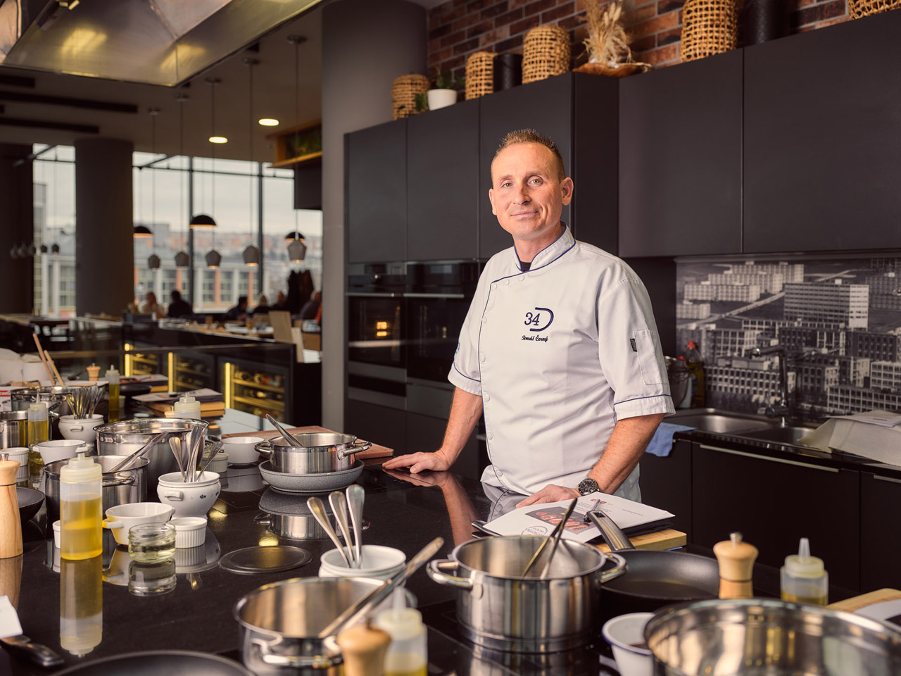 "Dejvická 34 je založena na tom, co vymyslím pro svou kuchyni a jaká jídla nabídneme našim hostům. Hlavním principem je ale to, že jsem vždy přímo na place, v kontaktu s hosty a dělám vlastně servis od A do Z. Mám rád lidi a nesmírně mě nabíjí být s nimi v přímém kontaktu."
