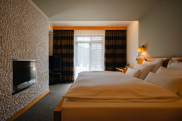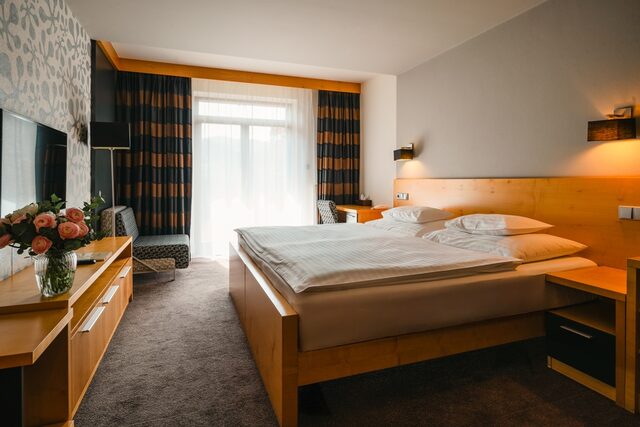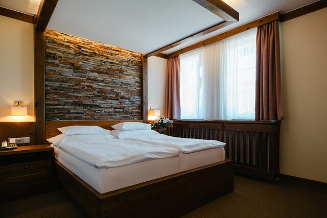 Luxusní dvoulůžkový pokoj s balkonem a s možností přistýlky, 5 pokojů je propojitelných s vedlejší místostí uzamykatelnými dveřmi.