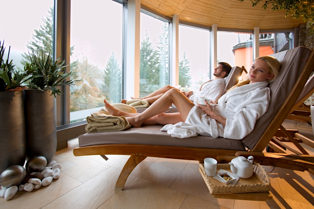 Vířivá vana přímo na pokoji, relaxační kout s pohovkou a výhledem do přírody, LED TV i lihový krb pro nabuzení příjemné atmosféry. V roce 2023 prošel rekonstrukcí s zvýšením standardu.