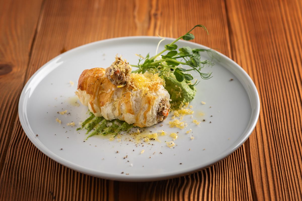 | Křehká trubička z listového těsta plněná hříbky marinovanými v lanýžovém oleji s lehkou cuketovou mousse /FOTO/ | 170 Kč |